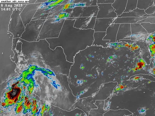 *En los trópicos*: la Tormenta Tropical *Ivo* relativamente cerca y al sur-suroeste del sur de Baja California Sur tiende a alejarse de costas nacionales. En la cuenca del Atlántico, la tormenta tropical *Dexter* se ha disipado, mientras que el disturbio *96L* lucha por mantenerse a mitad del Atlántico tropical, muy lejos de zonas pobladas. Finalmente, el *disturbio* al sureste de Estados Unidos no ha mostrado mucho cambio en las últimas horas. Para más información, consulte el Boletín Tropical.