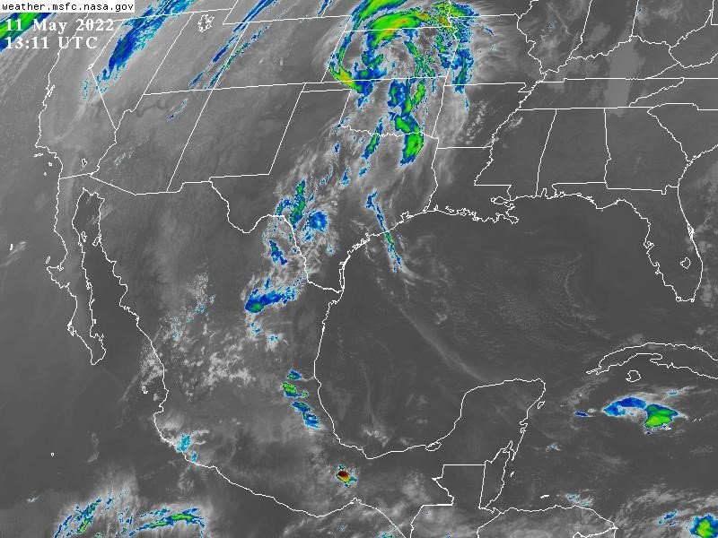 En las próximas 24 horas se espera que la probabilidad de lluvias y tormentas aisladas se concentre en entidades del norte, este, sur y sureste, con los máximos acumulados en el oeste de Coahuila, límites con Chihuahua, sectores de Durango, Zacatecas y Colima, Veracruz y límites con estados vecinos, sectores de Oaxaca y Chiapas, Tabasco, Campeche y Quintana Roo. En el resto del país, será bajo o nulo. Por otra parte, se prevé continúe el ambiente caluroso a muy caluroso en la mayor parte del país, con los valores de la temperatura máxima más altos en el sur de Sonora, Sinaloa, Nayarit, Jalisco, suroeste de Guanajuato, Colima, Michoacán, Guerrero, Morelos, suroeste de Puebla, Oaxaca, Chiapas, Chihuahua, noreste de Durango, Coahuila, Nuevo León, Tamaulipas, sureste de San Luis Potosí, Veracruz, Tabasco y estados de la Península de Yucatán. Mientras tanto, las temperaturas mínimas más bajas se esperan persistan en entidades del noroeste, norte y centro del país, persistiendo la probabilidad de heladas muy ligeras en la Sierra Madre Occidental y ahora también en la sierra de Baja California y sectores del centro. En el litoral y Golfo de México, se prevé viento del Sureste, Este, Noreste y Norte de 20 a 35 km/h con rachas de 45 a 60 km/h en el litoral de Yucatán y Sonda de Campeche. En el litoral del Pacífico Mexicano se prevé viento del Noroeste, Oeste y Suroeste de 20 a 35 km/h con rachas de 45 a 60 km/h en el noroeste del país. En el interior del territorio nacional, norte y parte del centro, nuevamente es posible viento convergente (suroeste y sureste) con rachas de 50 a 65 km/h esta tarde.
