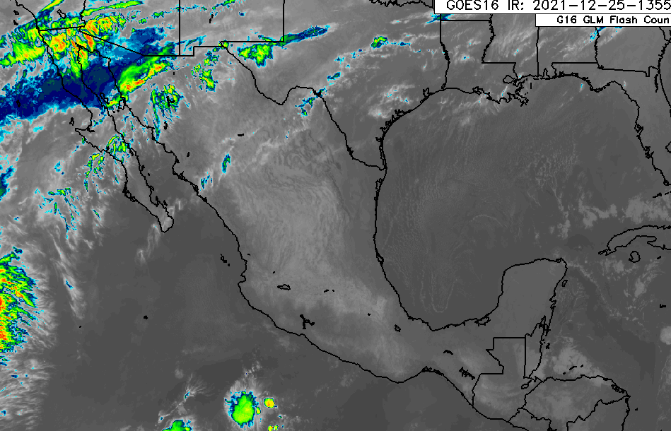 En las próximas 24 horas se prevé probabilidad baja o nula de lluvias, así como ambiente templado a caluroso en gran parte del territorio nacional, excepto en el norte de la Península de Baja California donde se pueden presentar lluvias aisladas de intensidad ligera, así como también dominará ambiente fresco. Los valores de la temperatura máxima más altos se esperan en sectores de los estados del norte, noreste occidente, sur y sureste, por la noche y madrugada seguirá dominado ambiente frío a fresco con posibles haladas en partes altas del territorio nacional, así como en el norte. En el Golfo de México se mantendrá viento del Este y Sureste de 20 a 35 km/h con rachas de 40 a 50 km/h en el noroeste del Golfo, costas de Tamaulipas y norte de Veracruz, así como en la sonda de Campeche. En el litoral del Pacífico mexicano se espera viento dominante del noroeste de 20 a 35 km/h con algunas rachas mayores en costas de la Península de Baja California.