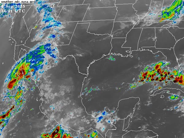 *En los trópicos:* cuenca del Pacífico oriental; el huracán *Lorena* con centro a 180 km al oeste-suroeste de Cabo San Lázaro, BCS, vientos máximos sostenidos de 120 km/h y movimiento actual al noroeste a 13 km/h, amenaza con impactar en el norte de Baja California Sur como Tormenta o Depresión Tropical la noche del viernes. En el Atlántico, una onda tropical al oeste-suroeste de las Islas de Cabo Verde eleva a 80% la probabilidad para evolucionar a Ciclón Tropical mientras se mueve hacia el oeste-noroeste. Para más información, consulte el Boletín Tropical.