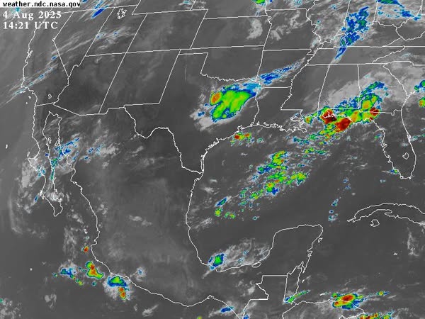 Amanece en el estado de Veracruz con cielo despejado a medio nublado del norte al centro y medio nublado a nublado en la zona sur, se observan núcleos de tormentas frente a la región de Los Tuxtlas.