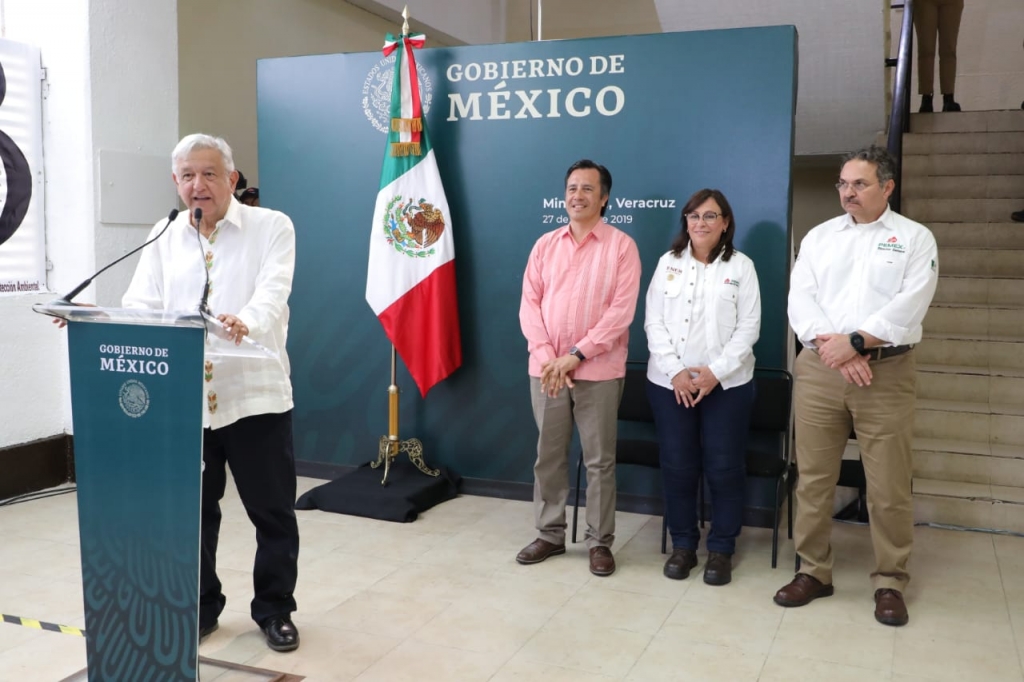 El presidente Andrés Manuel López Obrador, acompañado del gobernador Cuitláhuac García Jiménez, anunció la inversión de 4 mil millones de pesos para la reconfiguración de la Refinería “Lázaro Cárdenas”, de Minatitlán.