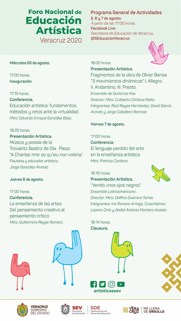 La Secretaría de Educación de Veracruz (SEV) presenta el Foro Nacional de Educación Artística Veracruz 2020 “Encuentro Virtual Rumbo al 2021”, que llevará a cabo del 05 al 07 de agosto por segundo año consecutivo.