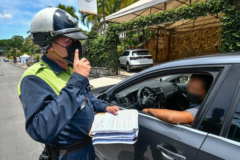 Durante la intervención vehicular el elemento solicita al usuario la licencia, en caso de no portarla se pide la tarjeta de circulación; de no contar con estos documentos, el personal de Tránsito tiene la facultad de proceder con el arrastre del vehículo al corralón municipal y se aplica la multa que se considera grave.
