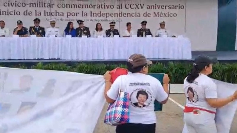 Madres buscadoras exigieron justicia y la búsqueda de sus seres queridos ante mandos militares y la alcaldesa de Acapulco, la morenista Abelina López, durante el desfile conmemorativo de la Independencia de México.