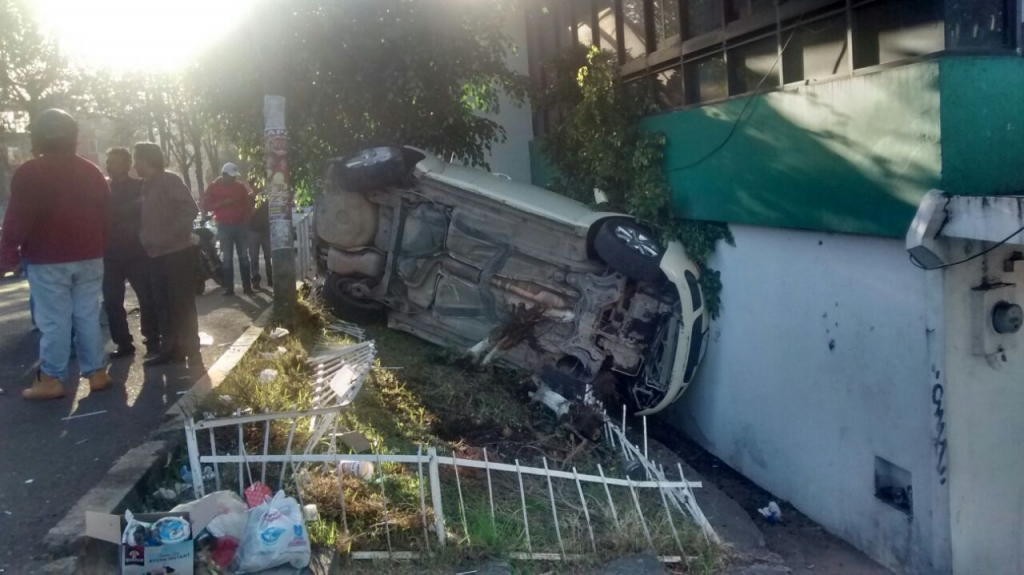 Esta mañana alrededor de las 08:30 horas se registró un choque y volcadura en la avenida Adolfo Ruiz Cortines, a la altura de la colonia Obrero Campesina.