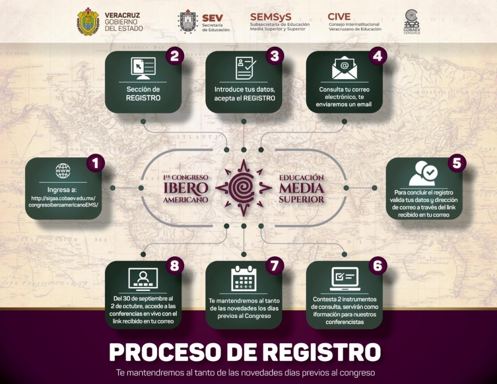 Las personas interesadas en sumarse a estos trabajos pueden ingresar a la página http://sigaa.cobaev.edu.mx/congresoiberoamericanoEMS/ donde están disponibles el programa y los lineamientos para el registro.