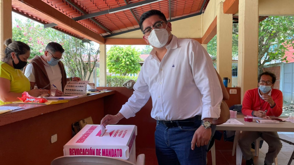 Xalapa, Ver., 10 de marzo de 2022.- Al celebrar que es un hecho histórico para la democracia en Veracruz y en México, el Delegado Estatal en funciones de Presidente del Movimiento de Regeneración Nacional (Morena), Esteban Ramírez Zepeta, acudió a emitir su voto en la primera consulta de revocación de mandato.