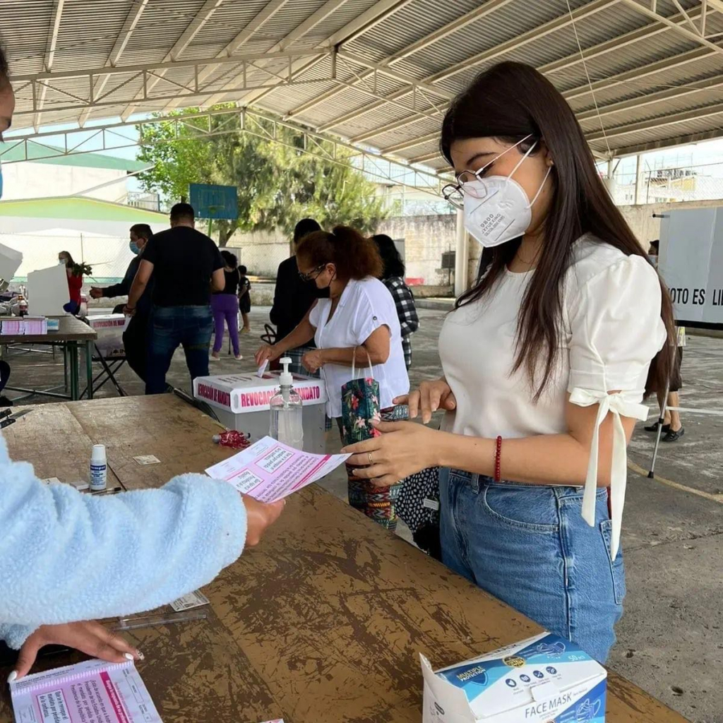 Xalapa, Ver., a 10 de abril de 2022.- Cerca del medio día Dorheny Cayetano ejerció su derecho ciudadano al participar en la primera consulta de revocación de mandato del Presidente. En la casilla instalada en la escuela primaria cerca de la colonia 21 de Marzo, la destacada ciudadana acompañada de su familia emitió su sufragio.