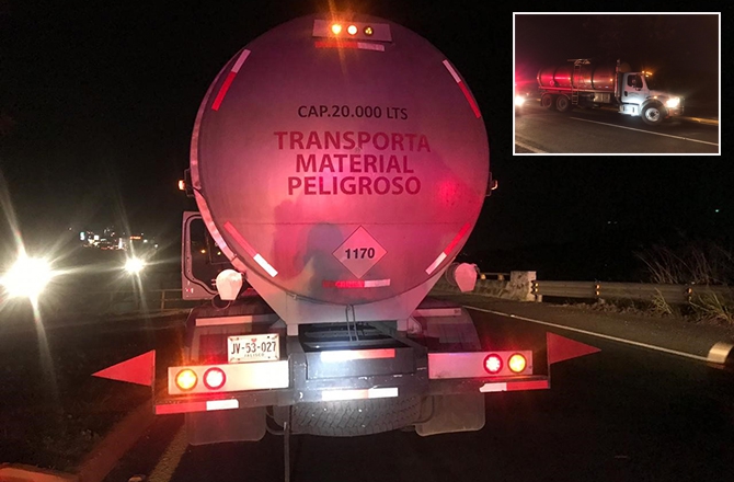 De acuerdo con el Informe Policial Homologado, elementos de la Policía Federal, en base a una denuncia, se trasladaron a la altura del kilómetro 005 + 200 de la carretera 140 Xalapa – Veracruz, tramo Xalapa – Corral Falso, donde localizaron un camión tipo tanque, con placas de circulación del Estado de Jalisco, con una carga de ocho mil 16 litros de alcohol etílico.