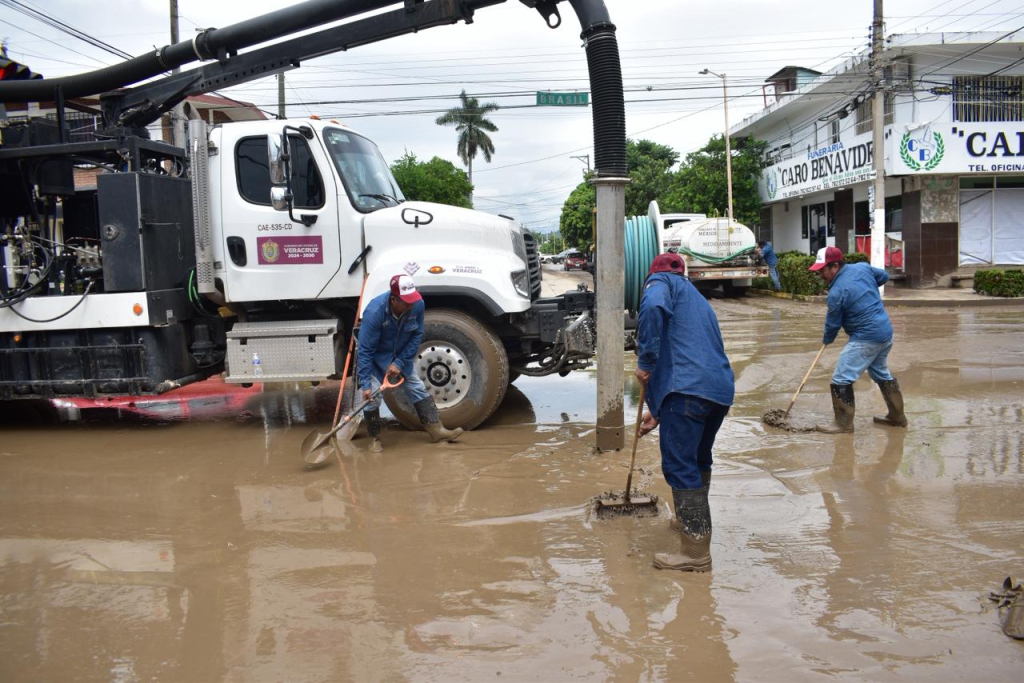 Los reportes confirmaron avances significativos en el retiro de lodo, desazolve y limpieza de calles y viviendas en Poza Rica, donde el nivel del agua descendió casi por completo. Solo una pequeña zona permanece con cerca de 30 centímetros de agua, donde continúan las labores de saneamiento.