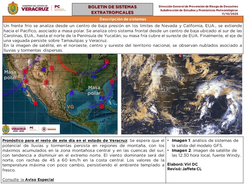 Pronóstico de seguimientos de sistemas extratropicales del 11 de octubre de 2025