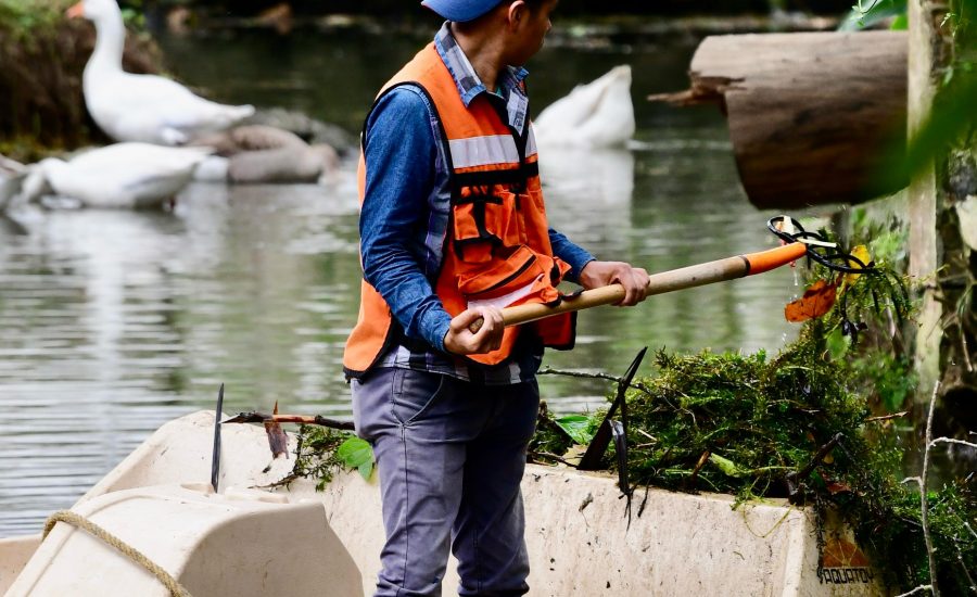Con el propósito de mantener en buen estado los espacios públicos y contribuir a la conservación de los cuerpos de agua, personal de la Dirección de Medio Ambiente realiza labores de limpieza en el Parque de la Señoría, en el fraccionamiento Las Ánimas.