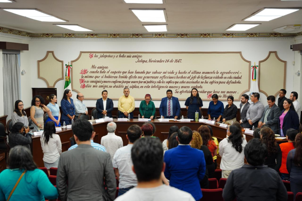 En representación del presidente del H. Congreso del Estado, diputado Rubén Ríos Uribe, y en cumplimiento a lo establecido en el Artículo 26 de la Constitución Política del Estrado de Veracruz de Ignacio de la Llave, la titular de la Secretaría de Servicios Legislativos, Ángeles Blanca Castaneyra Chávez, recibió del subsecretario de Egresos de la Secretaría de Finanzas y Planeación (Sefiplan), Pabel Pazos Rincón, el Proyecto de Presupuesto de Egresos para el ejercicio fiscal 2020.