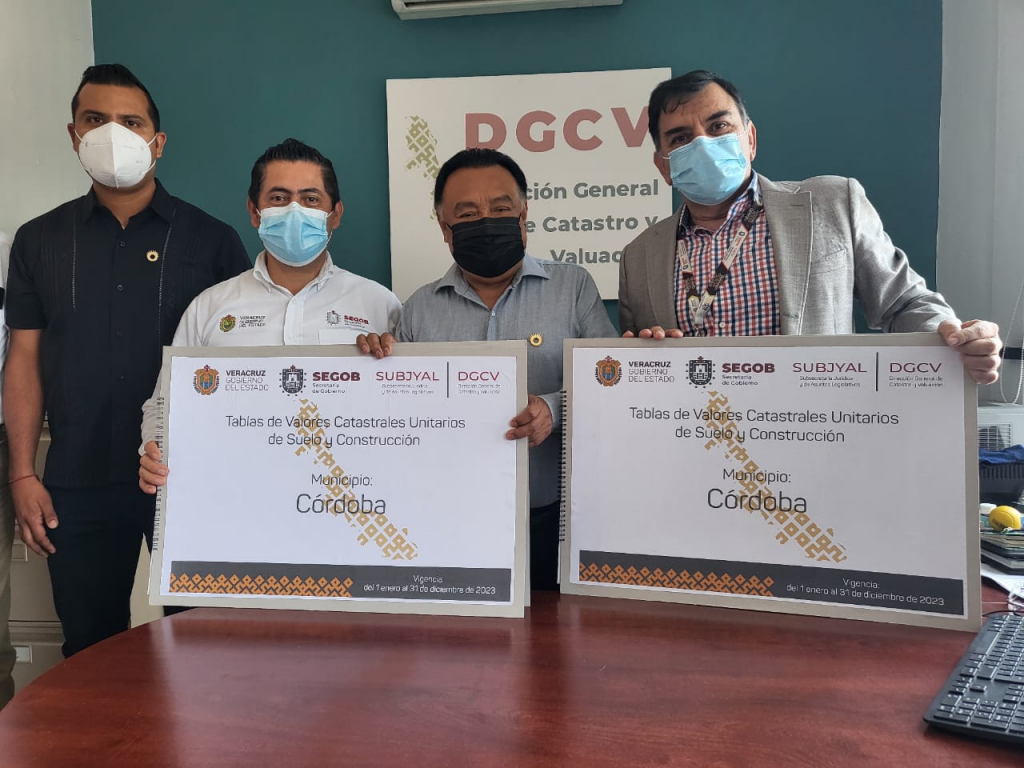Córdoba, Ver., (17 de mayo de 2022).- Este día el Presidente de Córdoba, Juan Martínez Flores, así como el coordinador de Catastro Municipal, Saulo Jordán Suazo Sosa, fueron recibidos por el director de la Dirección General de Catastro y Vinculación (DGCyV), Gabriel Hernández Cadena, quien les hizo entrega de la Tabla de Valores Catastrales Unitarios de Suelo y Construcciones para el ejercicio 2023.