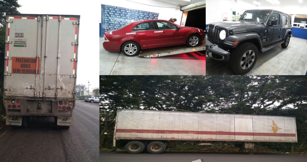 Más tarde hallaron un auto Ford rojo, láminas YHA1625; tenía reporte de robo con fecha 20 de enero de 2020. En la colonia Lázaro Cárdenas recuperaron dos cajas secas: una Mareqsa, número económico 1010 y placas 1YA7206; la otra, Utility de color blanco y número 51. Asimismo, en Fortín, encontraron dos cajas secas: una con placa 61US1 y la otra, 71UF1D.