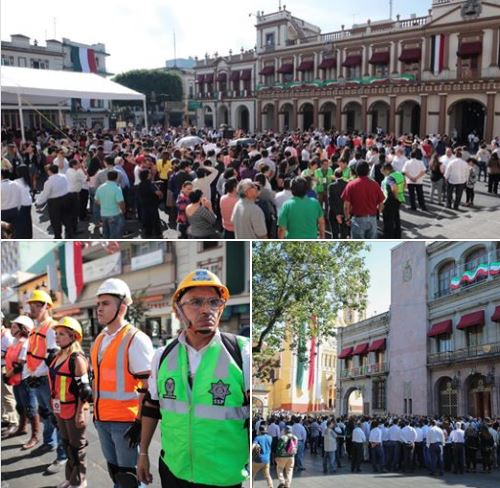 Acompañado de su Gabinete y mandos militares, el Gobernador destacó la participación de Veracruz al Macro Simulacro Nacional para fortalecer la cultura de la prevención y de protección civil.