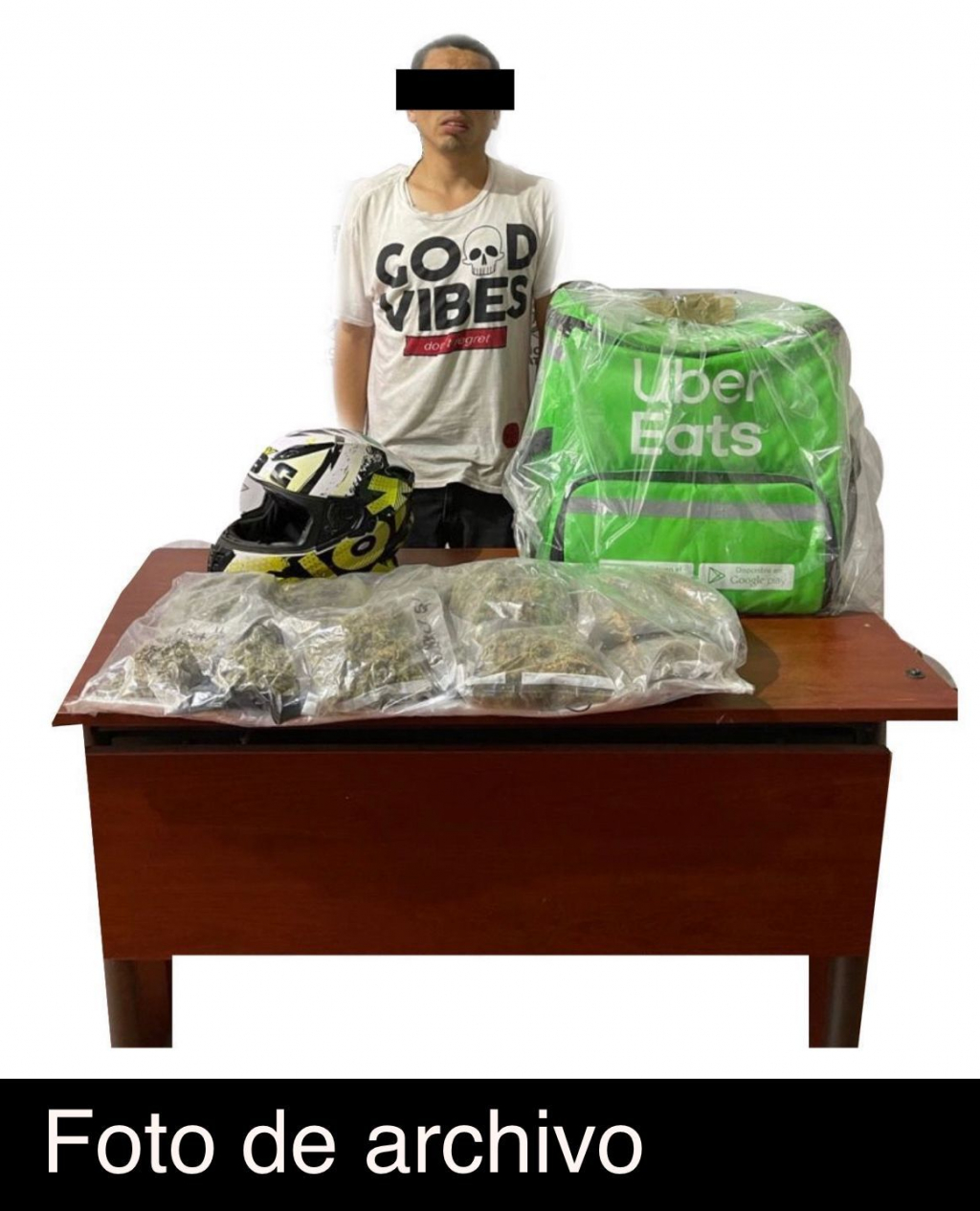 Al ejecutar la inspección encontraron, dentro de la maleta de Uber Eats, diez bolsas con marihuana, además de conducir una unidad vehicular con reporte de robo.