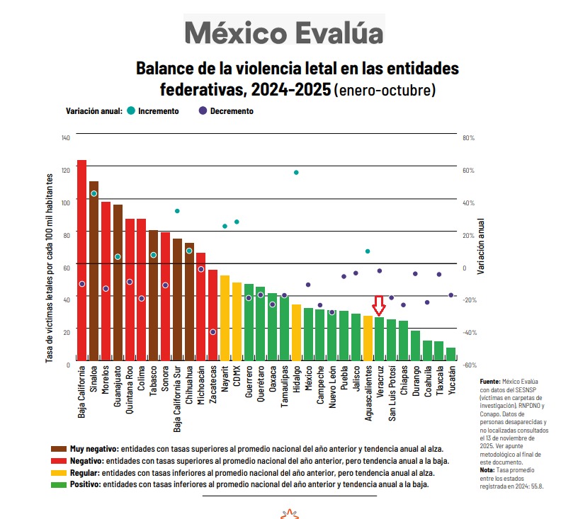 Con base en el informe de México Evalúa, se confirma que el estado de Veracruz mantiene una tendencia a la baja en violencia letal
