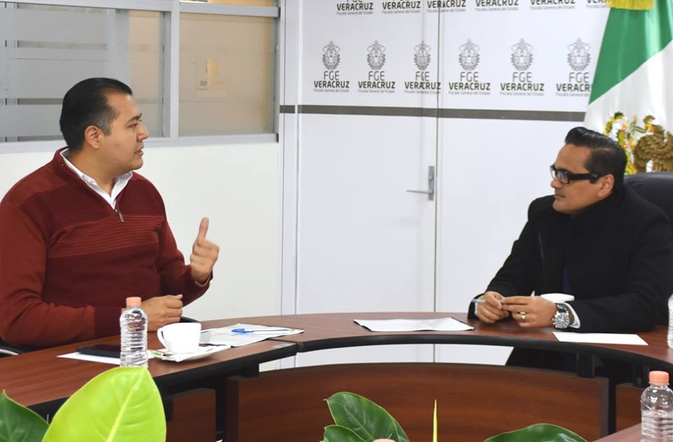El Fiscal General del Estado, Mtro. Jorge Winckler Ortiz sostuvo una reunión de trabajo con el alcalde de Coatepec, Luis Enrique Fernández Peredo, en la cual fueron analizados diversos temas en materia de procuración de justicia.