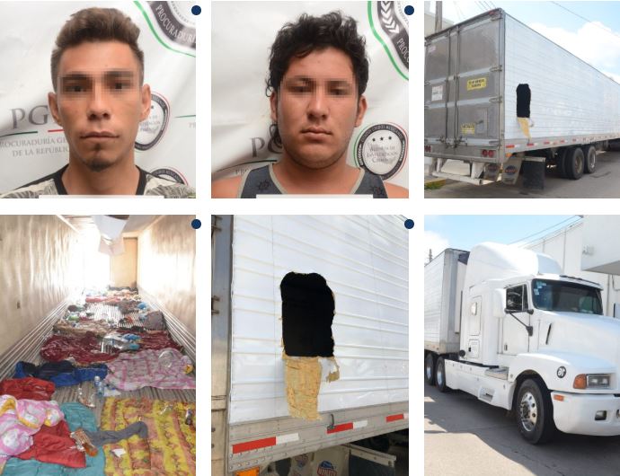 De acuerdo con la carpeta de investigación, José “P” y Sergio “V” fueron detenidos por elementos de la Guardia Nacional, en el municipio de Moloacán, Veracruz, cuando circulaban en un tractocamión con placas de circulación del Servicio Público Federal, en el cual transportaban 146 personas de nacionalidad Hondureña, Guatemalteca, Salvadoreña y Nicaragüense, entre ellos 60 menores de edad, sin que pudieran acreditar su legal estancia en el país.