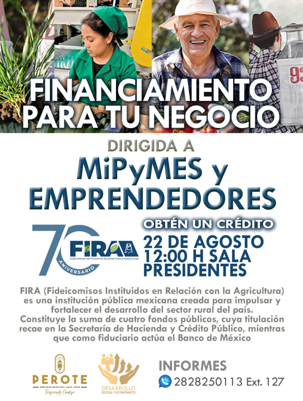 Te invitamos a que asistas a la plática informativa que brindará FIRA donde encontrarás financiamiento para todos los sector productivos!