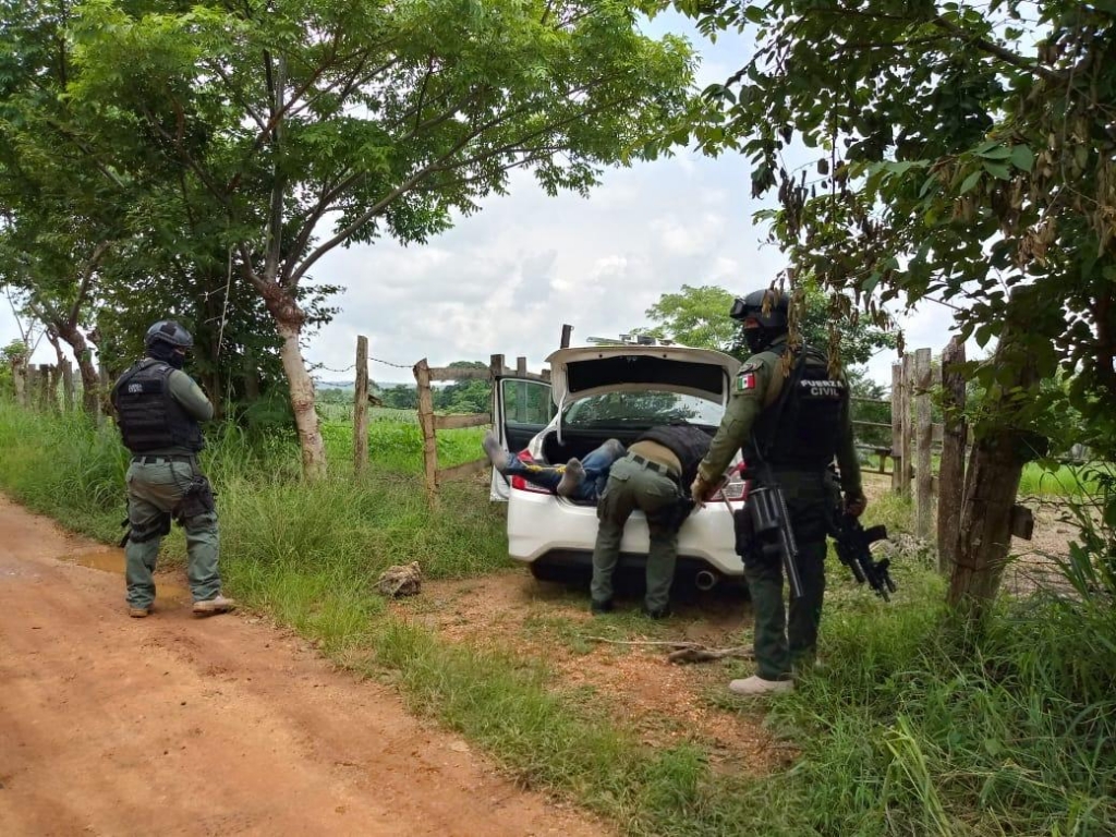 Luego de un intenso operativo para la búsqueda y localización de la víctima, los efectivos ubicaron un Nissan Versa, sin placas y en aparente abandono, en la localidad San Manuel, perteneciente al municipio de Hueyapan de Ocampo; al inspeccionar la unidad hallaron en la cajuela a un hombre atado de pies y manos, por lo que de inmediato lo liberaron y le brindaron atención médica.