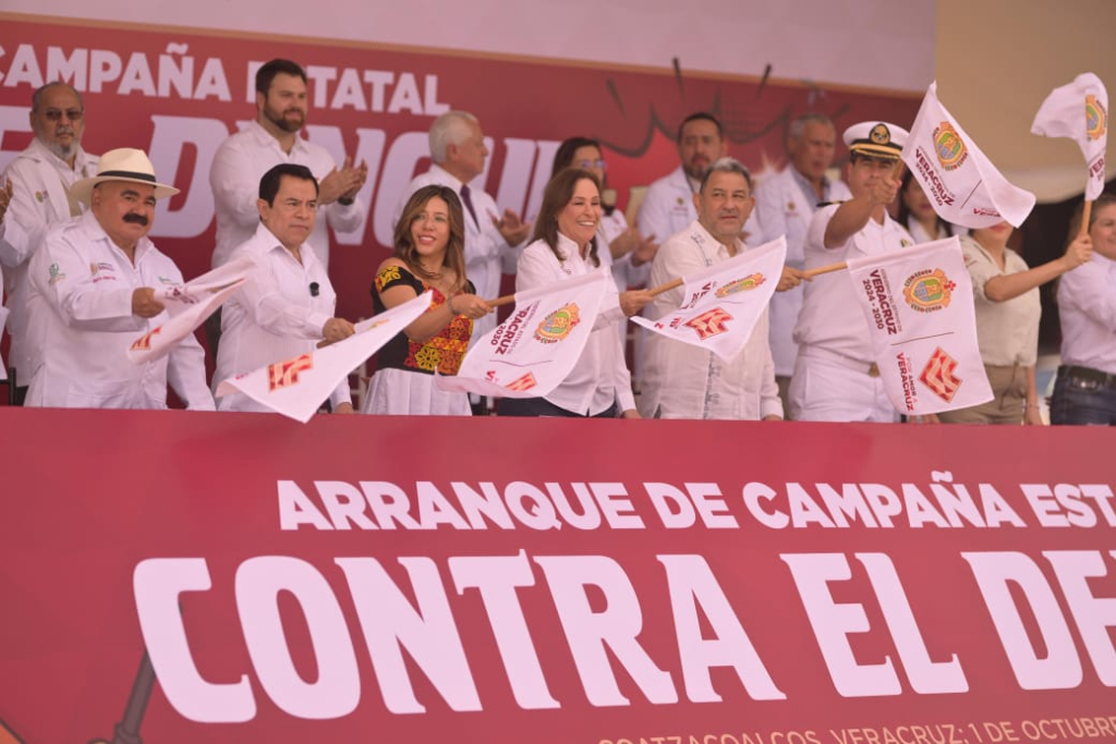 Coatzacoalcos, Ver., miércoles 01 de octubre de 2025.- Con un llamado a la corresponsabilidad ciudadana, la gobernadora Rocío Nahle García dio el banderazo de arranque a la Campaña Estatal de Lucha contra el Dengue, cuyo objetivo es alcanzar la meta de cero casos en Veracruz.