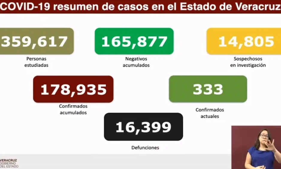 La Secretaría de Salud de Veracruz reportó que ya suman 16 mil 399 fallecimientos por COVID-19 en la entidad desde el inicio de la epidemia, 3 decesos más que el día anterior.