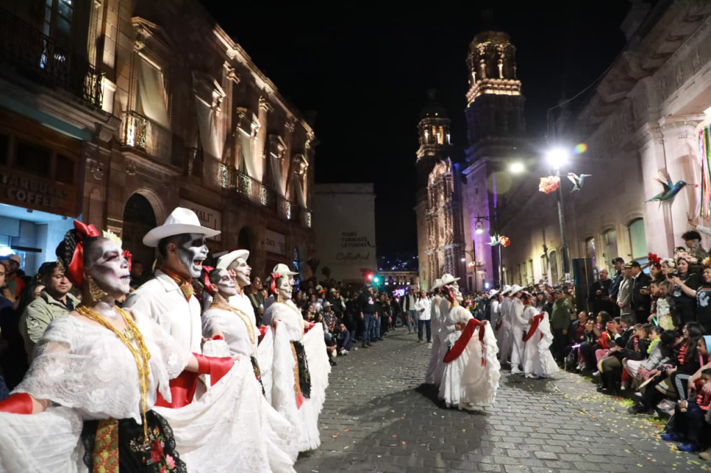 Zacatecas, Zac., sábado 01 de noviembre de 2025.- Con una amplia muestra de arte y patrimonio vivo, Veracruz participó como invitado de honor en el décimoquinto Gran Desfile del Festival de Día de Muertos; con la fuerza y alegría que distinguen a su gente, el estado compartió su diversidad cultural, su música y sus tradiciones en homenaje a los fieles difuntos, marcando así el cierre de su participación en el Festival de Día de Muertos Zacatecas.