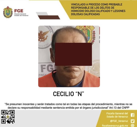 La Fiscalía General del Estado informa que, a través de la Fiscalía Coordinadora Especializada en Asuntos Indígenas y de Derechos Humanos obtuvo vinculación a proceso en contra de Cecilio “N” como probable responsable de los delitos de homicidio doloso calificado, cometido en agravio de una víctima de identidad resguardada y lesiones dolosas calificadas, cometido en agravio de la víctima A. C. T.