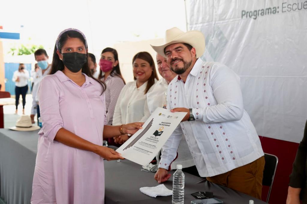 Por su parte, el alcalde Fernando Luis Remes Garza destacó que hoy escuelas de Poza Rica son beneficiadas con este programa, por lo que resaltó el trabajo colaborativo con las autoridades estatales; en tanto la maestra Griselda Reyes Escamilla, en representación del personal directivo, agradeció al gobernador Cuitláhuac García Jiménez, al secretario de Educación, al alcalde y a todas las autoridades que intervinieron, porque hoy después de más 100 años se cristaliza un sueño al recibir la escritura de la escuela “Enrique C. Rébsamen”.
