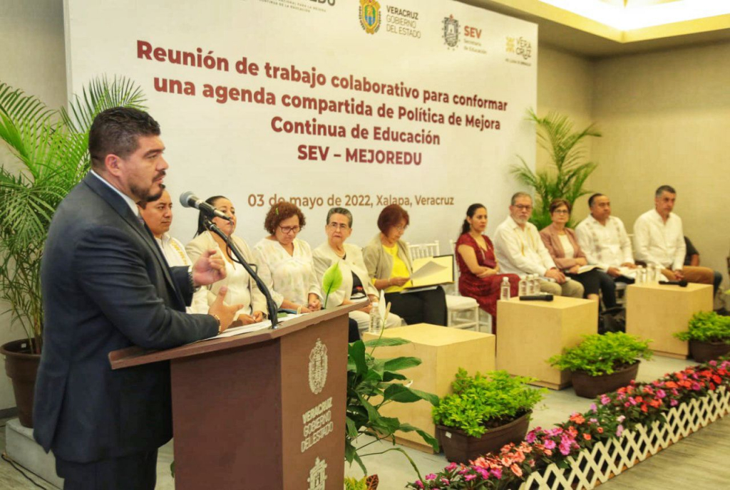 Al realizarse la Reunión de trabajo colaborativo para conformar una agenda compartida de Política de Mejora Continua de Educación SEV – MEJOREDU, Escobar García resaltó el trabajo hecho durante su administración, entre ellas, en el rubro de la infraestructura educativa y con los 100 organismos sindicales que ha permitido que hoy Veracruz sea uno de los estados con mayor número de escuelas abiertas, tras dos años de pandemia.